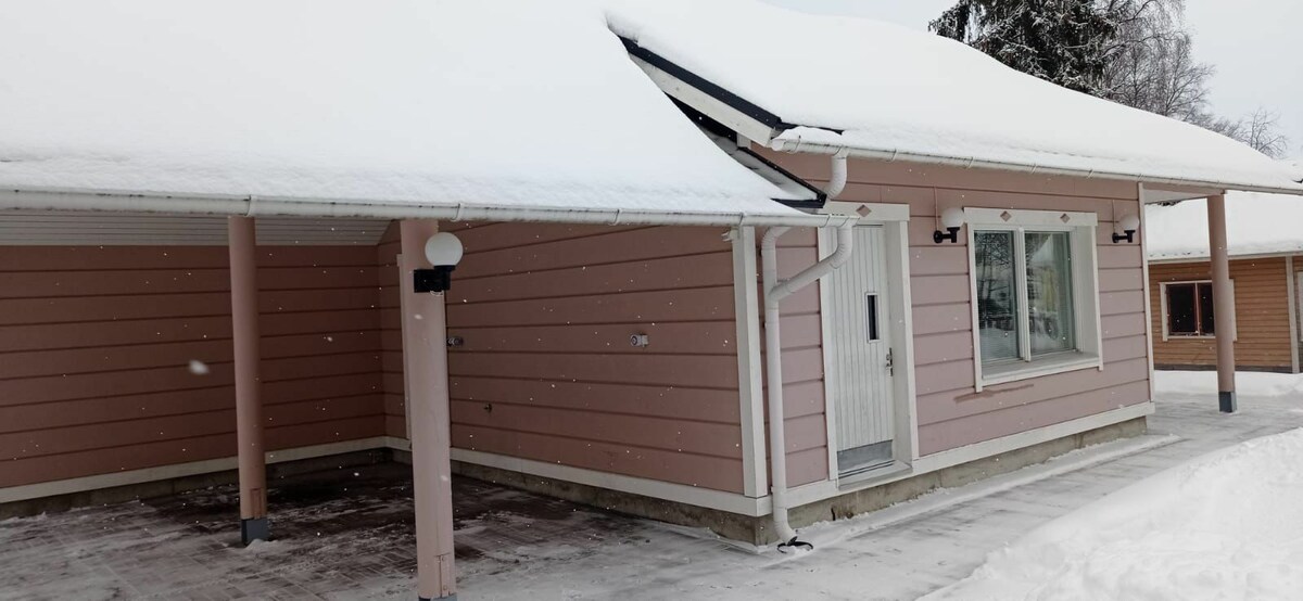 Cabaña bien equipada en una parcela grande y junto al río y la naturaleza. La cabaña tiene lugares para dormir para ocho + cama de tamaño bebé. La gran sauna al aire libre ofrece vapores cálidos y la cabaña de barbacoa está disponible para cocinar y calentarse. En el exterior tenemos muchos tipos diferentes de juegos al aire libre y un puesto de juegos. Dentro hay 2 televisores, consola de juegos y diferentes juegos de mesa.