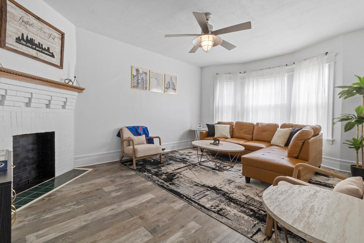 Considera esta casa tu hogar lejos del hogar mientras visitas Buffalo. Este alojamiento renovado en un barrio tranquilo justo al norte de la ciudad está en el centro de Buffalo, las cataratas del Niágara y todo lo que ofrece el oeste de Nueva York. Esta encantadora propiedad cuenta con 2 BR con camas tamaño queen con capacidad para 4 personas cómodamente + 2 baños completos y espacio de trabajo remoto. Cocina totalmente equipada, wifi y mucho estacionamiento. Con servicios como aire acondicionado, wifi y lavadora, los huéspedes se sentirán como en casa.
