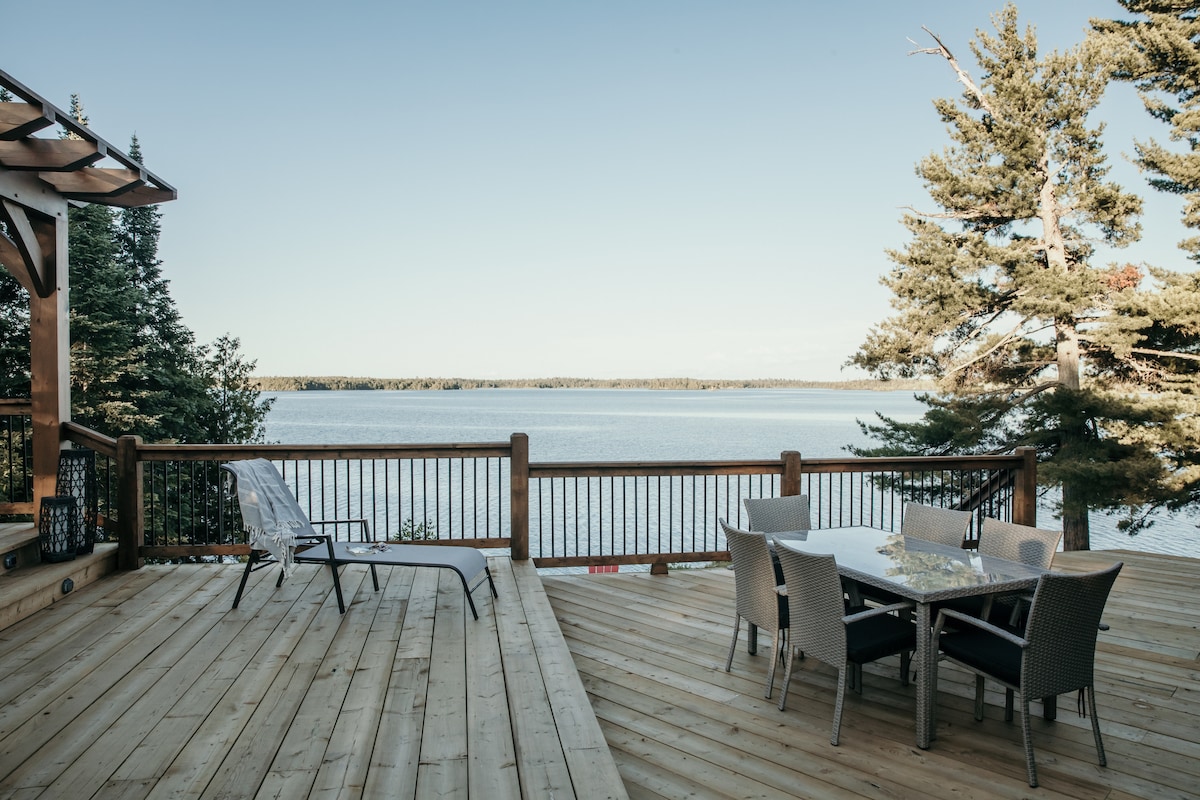 Olvídate de tus preocupaciones en esta acogedora cabaña frente al mar a solo 10 minutos de Kenora. Disfruta de un refugio privado con impresionantes vistas al lago, comodidades modernas y fácil acceso a los servicios. Relájate en la espaciosa terraza con tu café por la mañana o aprovecha el acceso privado al lago. En el interior, disfruta de una cocina bien equipada, wifi de alta velocidad y una acogedora sala de estar. Los aspectos más destacados al aire libre incluyen una barbacoa, una chimenea y asientos para observar las estrellas. ¡Un escape perfecto de una vida ajetreada!