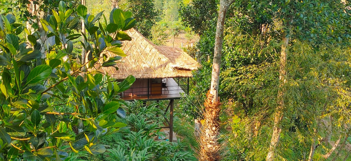 Kriscal Kabin es una espaciosa casa del árbol, situada en la misma propiedad que Morleys Place y Noah 's Nest, equipada con todos los servicios modernos. Ubicada a una altitud de 2800 pies sobre el nivel del mar,en medio de una plantación de té y especias, a orillas del río Periyar, cerca del santuario de vida salvaje de Thekkady. Es un lugar tranquilo y tranquilo para el aislamiento o la soledad. La vista es increíble con una vista infinita de plantaciones de té, el río Periyar y bosques boscosos.