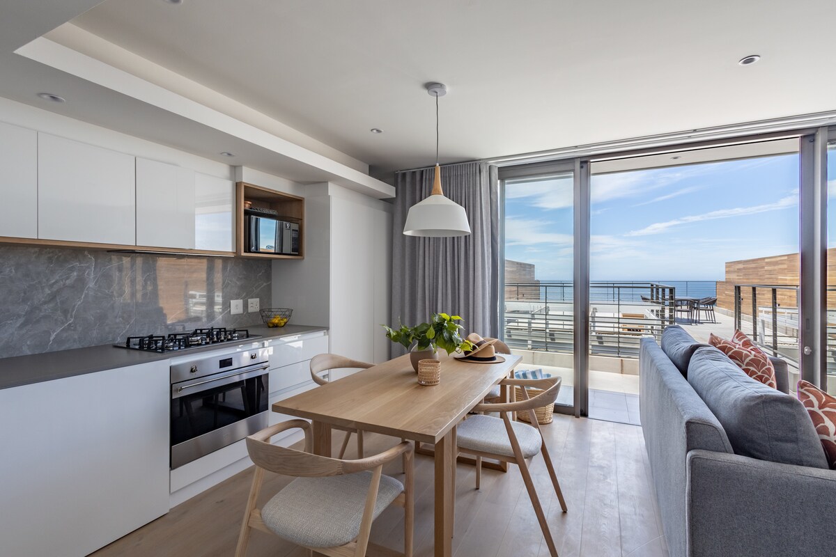 Disfruta de una vida costera elevada en este lujoso apartamento de 2 dormitorios en la planta superior de Plett Quarter. Ambos dormitorios ofrecen baño privado con ducha, WC y artículos de aseo gratuitos. La cocina totalmente equipada incluye lavadora/secadora, lavavajillas, horno, tostadora y nevera. Relájate en el salón con una televisión inteligente. La amplia terraza cuenta con vistas al mar, muebles de exterior y un braai Weber y de gas, perfecto para el entretenimiento relajado. Con aire acondicionado y aparcamiento seguro, la comodidad está garantizada.