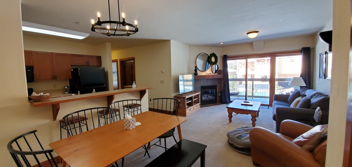 ¡Bienvenido a nuestro luminoso apartamento de 1 dormitorio en el corazón de River Run Village (Keystone Mountain)! ¡Evita los autobuses hasta los remontes, ya que este apartamento está a 3 minutos a pie de la telecabina! Este apartamento tiene capacidad para cuatro personas y cuenta con un dormitorio privado con cama tamaño king, así como una unidad actualizada con encimeras de granito. Disfruta de tu bebida favorita mientras tomas el sol y vistas espectaculares de las pistas, ya sea en el interior calentado por el fuego o en el exterior en tu propio balcón privado.