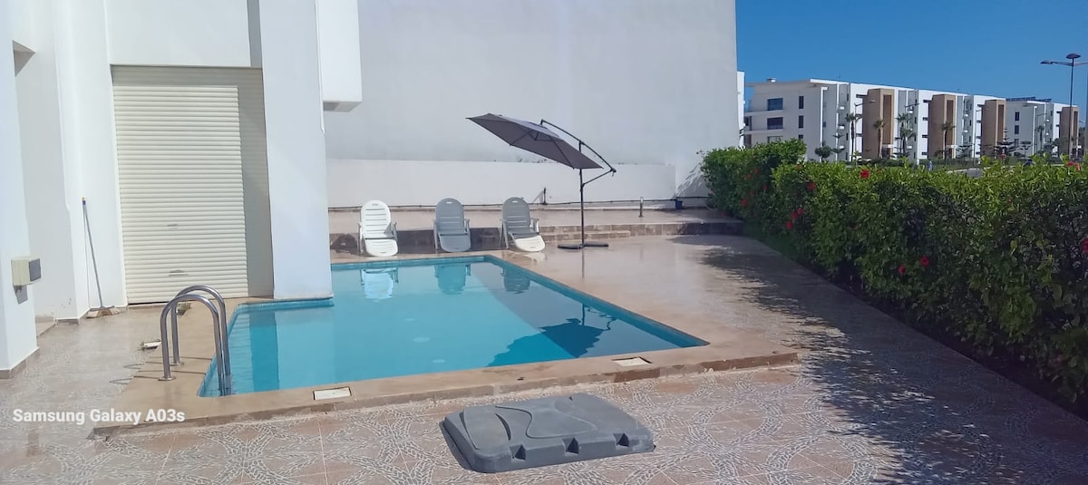 Descubra un remanso de paz en Plage des Nations, a 10 minutos de la autopista que sirve Rabat, Salé y Kenitra. Residencia segura con 6 piscinas, acceso directo a una cala salvaje y playa de las Naciones. Apartamento de lujo con 2 dormitorios dobles, salón interior y exterior, cocina equipada, fibra 100mbs . Terraza con vistas al mar, comedor exterior, instalaciones deportivas. En las inmediaciones: golf, supermercado y panadería. Disfrute de las comodidades modernas y de la tranquilidad.