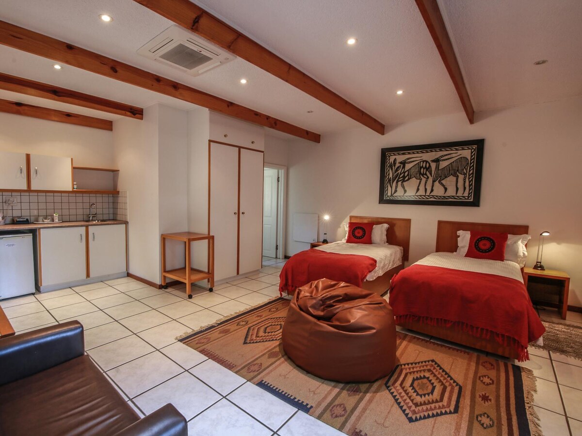 Enjoy this wonderful flat located in downtown Windhoek, Namibia – The smile on the face of Africa! Inspired by our love for this beautiful country, we've created a warm and inviting space that immerses guests in Namibia's unique charm and culture. Whether for a corporate team or family getaway - our haven awaits you to embark on unforgettable adventures. On vacation/ holiday or business - enjoy the breathtaking landscapes, savor local cuisine, shopping nearby, and then rest in our cozy place.
