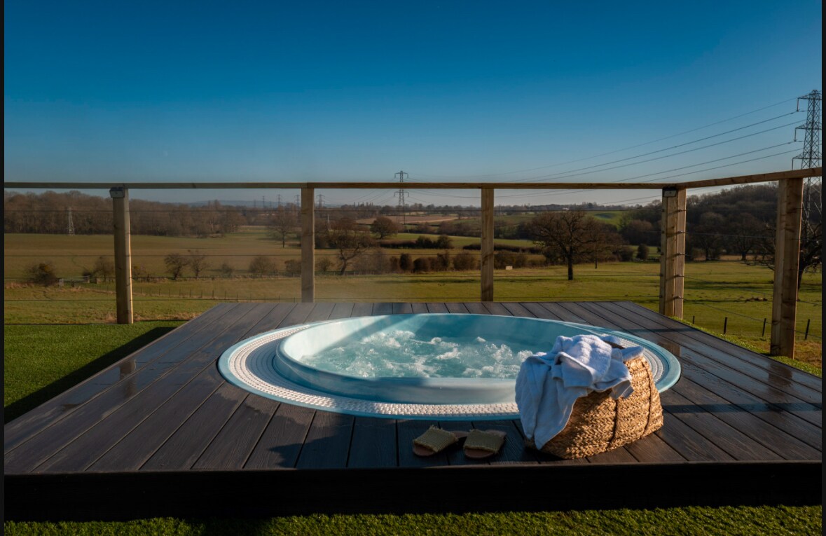 The View, located on a peaceful small holding (7 alpacas & 2 goats) offers stunning countryside panoramas. A private hot tub and BBQ area await for you to unwind with the views and stars at night! Luxurious bathroom with deep bath and double shower. Enjoy the king size bedroom alongside an open plan kitchen and lounge (double day bed and double sofa bed). Wyre Forest & Go-Ape (opposite), Safari Park (4mi), Bewdley (2mi), country walks plus local pubs within walking distance!