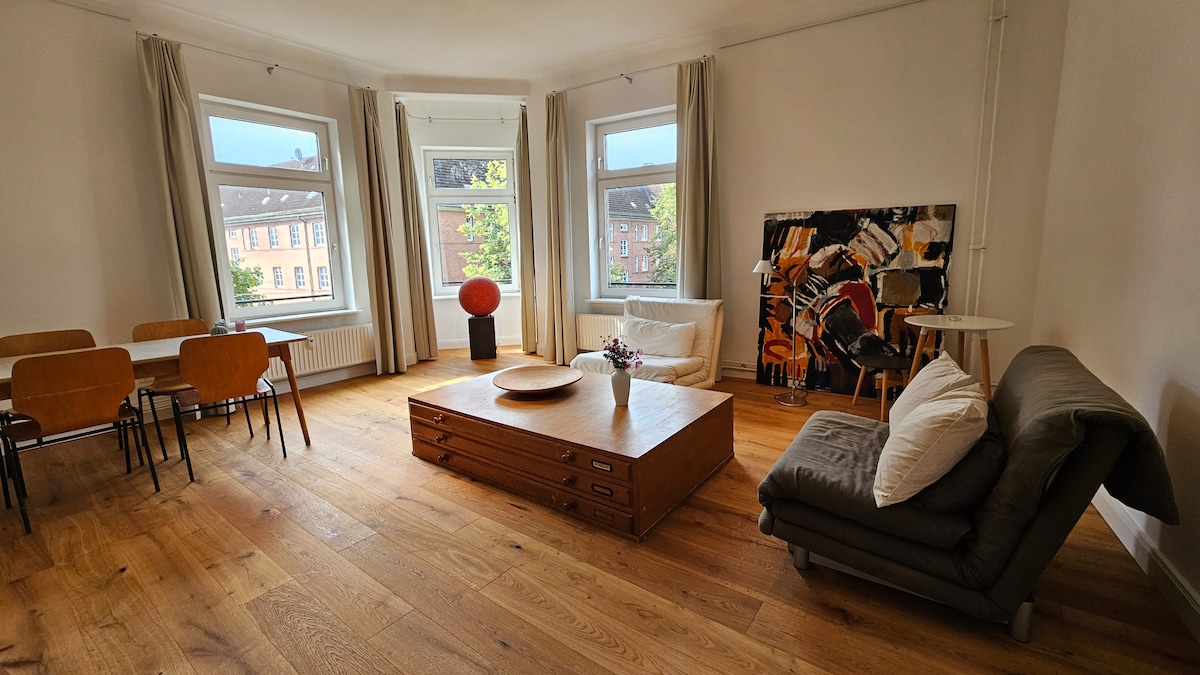 Bienvenido a nuestro apartamento de vacaciones recién reformado y amueblado en un edificio antiguo de Kiel. Aquí podrá disfrutar de todas las comodidades de la vida urbana y, al mismo tiempo, respirar el aire fresco del mar en el fiordo de Kiel o en una de las playas del mar Báltico que lo rodean.