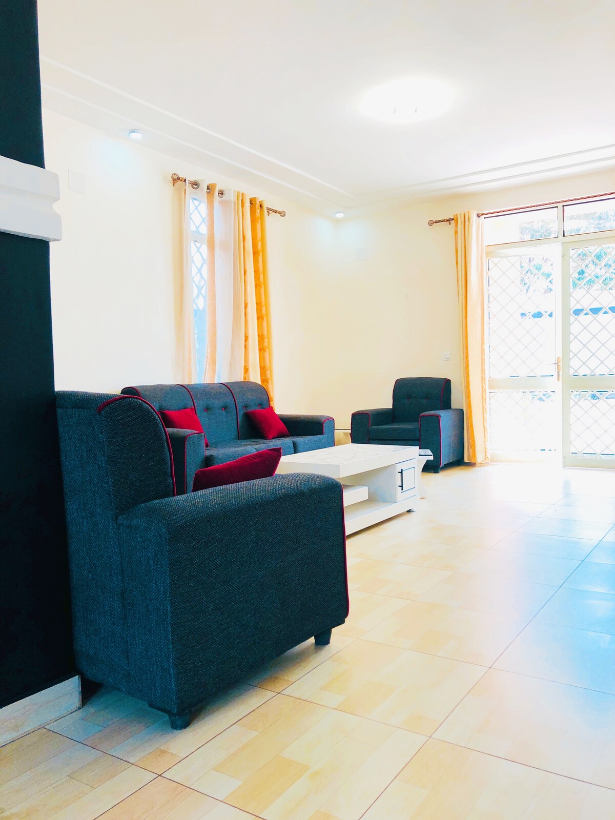 Apartamento con dos dormitorios totalmente amueblado y con servicios en renta en Nyarutarama. La unidad cuenta con todas las comodidades y servicios públicos ( ascensor, agua caliente solar ilimitada, Wi-Fi, etc.) Se encuentra en un complejo enorme con suficiente estacionamiento, piscina, restaurante y gimnasio. La unidad tiene todos los electrodomésticos, incluida una lavadora doble y un televisor inteligente. El alojamiento está bien vigilado y tiene una recepción las 24 horas. El departamento está ubicado en un vecindario sereno y tranquilo, en una carretera asfaltada junto a supermercados y restaurantes