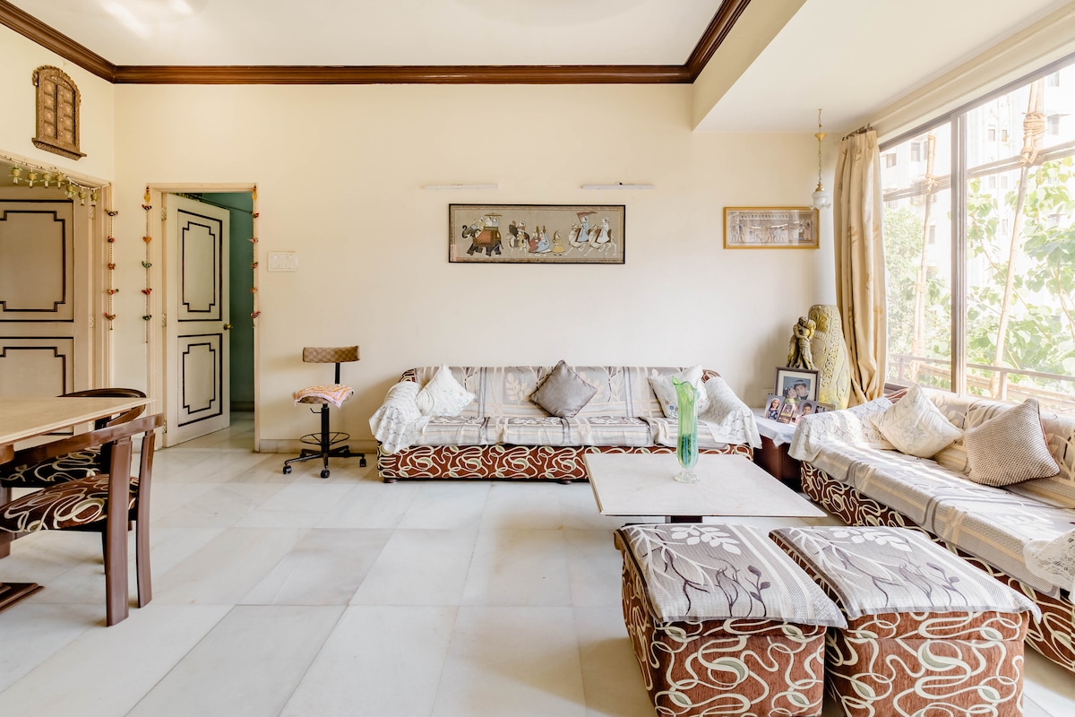 Este espacio de 2BHK se ha renovado recientemente y ofrece una variedad de servicios, que incluyen aire acondicionado, televisión, camas de espuma viscoelástica de alta calidad y muebles de lujo. Además, cuenta con un amplio balcón para relajarse. También ten en cuenta que el camino al segundo dormitorio es pasar por el primer dormitorio. No hay ningún camino separado. Desayunamos disponible a los precios de la carta. Envíame un mensaje para explorar las opciones de desayuno.