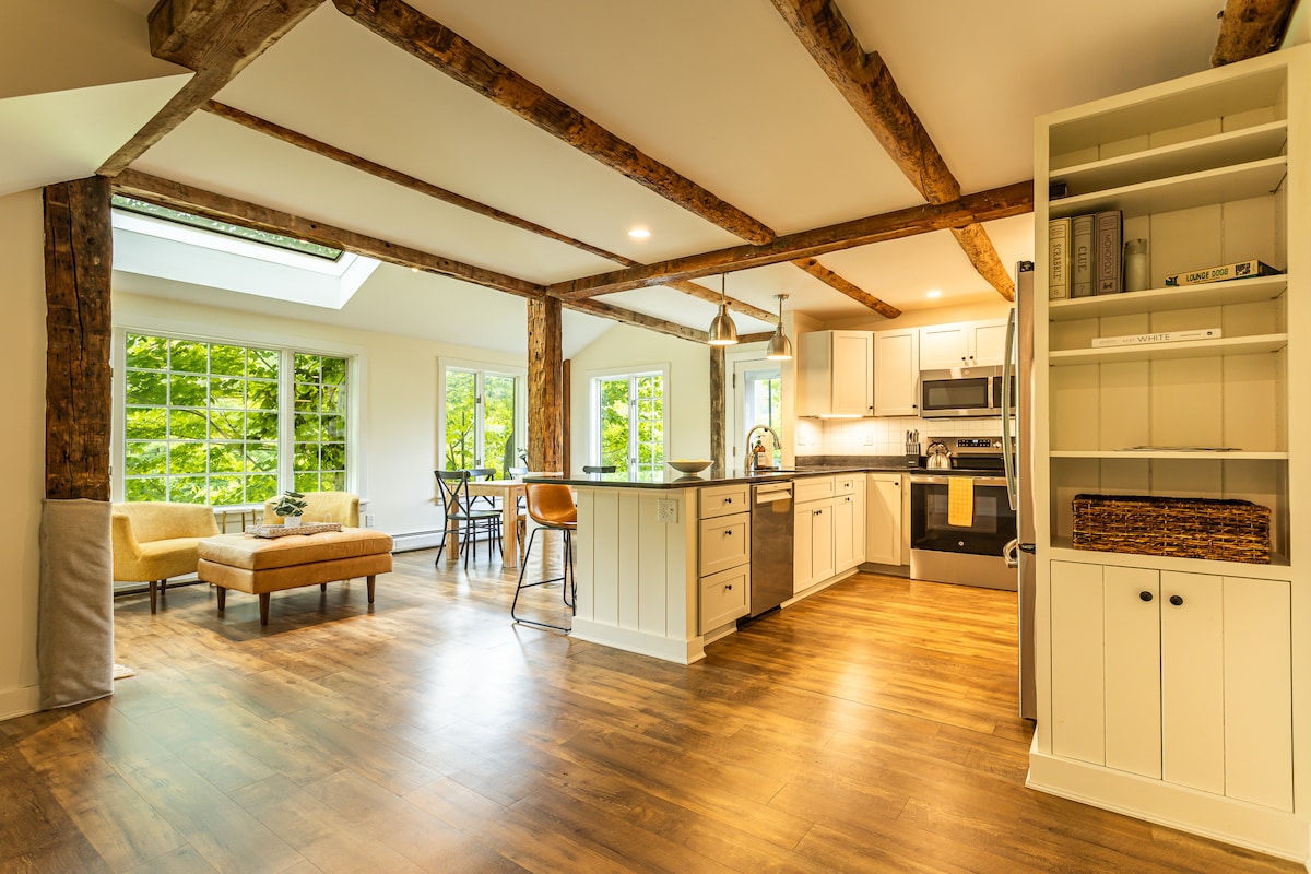Bienvenido a “The Loft”. Un espacio elevado en el último piso de un granero con estructura de madera. Los propietarios son diseñadores/constructores que han combinado los elementos de la artesanía del viejo mundo con la alta eficiencia tecnológica para crear un espacio habitable que sea luminoso, espacioso y, sin embargo, acogedor. Impulsado por energía solar, este granero de carruajes adjunto se encuentra en una tranquila carretera secundaria a 3,5 millas de Woodstock Village y a 3 millas de GMHA. El loft tiene su propia entrada privada, estacionamiento y un balcón al atardecer. Para obtener más información, visita @theloft.vt