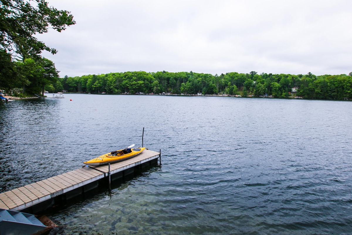 Casa tranquila con 2 dormitorios y 2 baños que admite mascotas, junto a una entrada privada en el lago Spider con 100' de fachada. El interior de la casa ha sido renovado: cocina, baños, suelos de madera, muebles de cuero, TV inteligente 4K de 60 pulgadas con cable HD e internet de alta velocidad. Incluye (2) kayaks de cortesía, una tabla de paddle, bicicletas de montaña y leña. Barco pontón de 16 pies disponible para alquilar. Ya sea que estés en Traverse para una aventura de verano, una buena comida, un negocio de cata de vinos o visitar a amigos y familiares, este es un lugar ideal para relajarse.