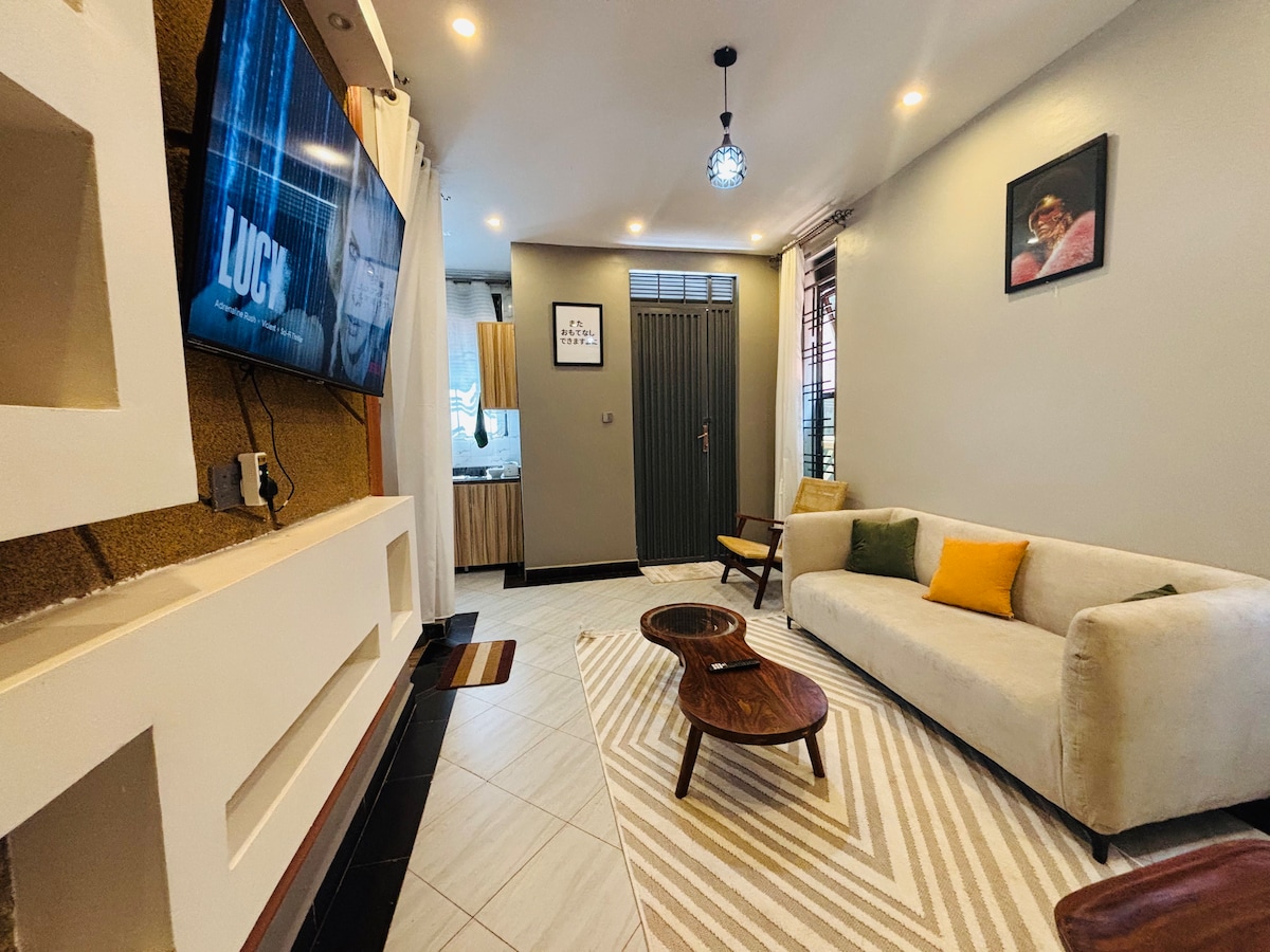 NGANZI homes are located in the heart of Najjera - Kampala first class life in a residential neighborhood with access to social amenities like gyms. restaurants, night life, fueling station, medical facilities & very good security. the property gives you access to a green clean compound, unlimited internet, cozy homely feel within a quite neighborhood. NGANZI homes are all fully furnished with first class furniture, smart TVs, neat and well fitted kitchen, good lighting & crystal clean spaces.