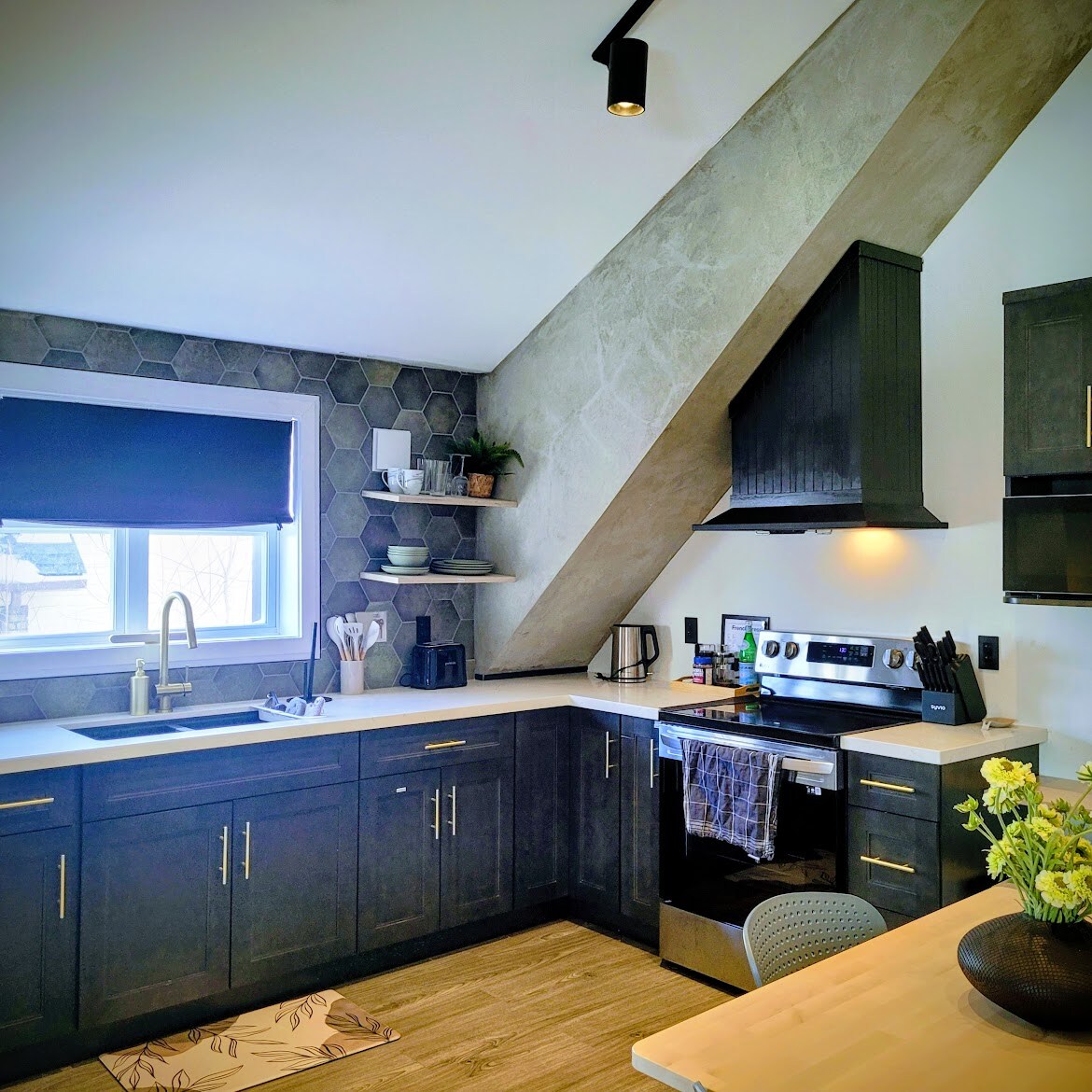 Welcome to our luxurious garden suite with a private outdoor hot tub, perfect for relaxation! Located in downtown Kitchener, it’s steps from cafes, bakeries, restaurants, and the weekend farmers market. This 2Bed/2Bath suite includes a fully equipped kitchen, washer/dryer, and stunning new flooring. With quick access to highways, transit lines to colleges and universities, and the Iron Horse Trail, it’s the ideal space for families, workers, and students. Parking is also included!