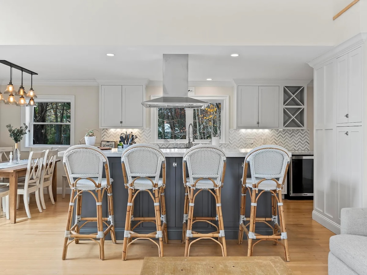 Este elegante apartamento moderno a nivel del jardín está bien ubicado en Kittery y proporciona recomendaciones locales de los anfitriones que viven en la unidad superior. La cocina está totalmente equipada con todas tus necesidades de cocina y café, e incluye una nevera debajo de la encimera, un congelador debajo del mostrador y un microondas. La casa está a menos de una milla del centro de Kittery y las puertas del astillero, y a menos de dos millas de Portsmouth. (Todos muy transitables con aceras) Número de licencia STR de Kittery: ABNB-25-43