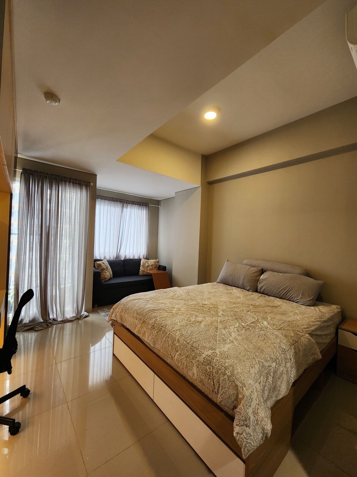 Located in Sentul city, for a small family, this place is a perfect getaway weekend to relax. For people who have to work from home, let this place be it, with a fast wifi, a private room with a desk work, a spacious balcony and a sofa bed. You wil have another spacious balcony in your very own master bedroom. We also use google nest, a smart TV, smart lamps, an automatic door lock, 3 CCTVs to keep you safe. You will have your own house keeper (live separately), in case you need something.