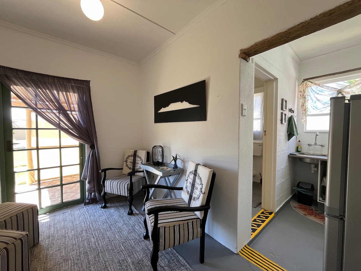 Esta encantadora unidad de estilo granja es una de las casas originales de Kleinzee, ahora bellamente transformada en un espacio único que combina arte, artesanía, cafetería acogedora, boutique de regalos y un alojamiento cómodo. La propiedad ofrece una visión de la rica historia y el encanto único de la zona. Duerme bajo los cielos serenos y estrellados de Namaqualand y saborea tu café de la mañana en la privacidad de tu propio patio. Una verdadera joya y ofrece una combinación perfecta de tranquilidad, historia y encanto.