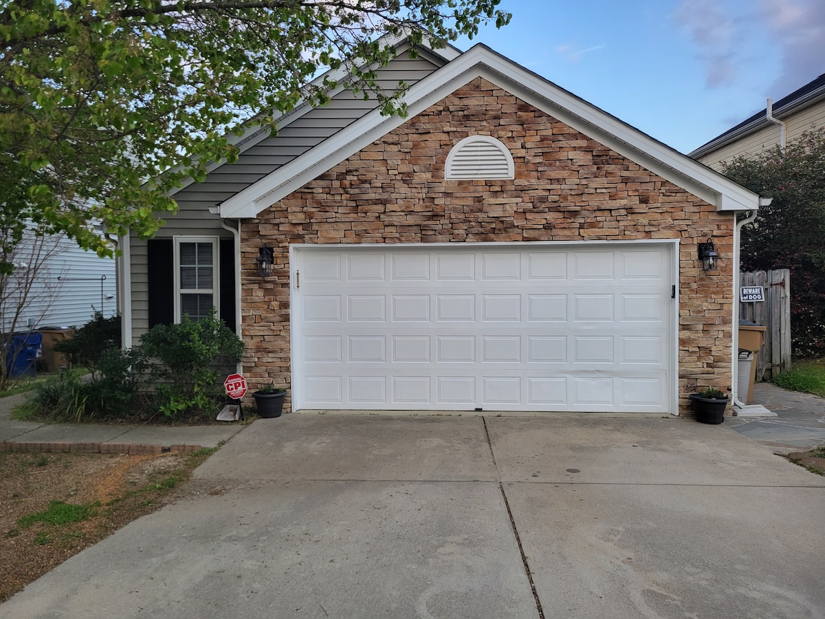 ¡Bienvenido a tu hogar lejos de casa! Perfecto para una pequeña escapada familiar o una estancia corporativa. ¡Ubicado en el noreste de Raleigh y cerca de todo! Las atracciones locales incluyen el sendero del río Neuse, el complejo de fútbol WRAL, el centro comercial Triangle Towne Center, tiendas de comestibles y mucho más. El espacio es limpio, acogedor y todo tuyo. El barrio es tranquilo, con acceso directo a la vía verde. Te encantará la comodidad, así como tu propia lavadora/secadora privada y cocina totalmente equipada para cocinar en estancias más largas.