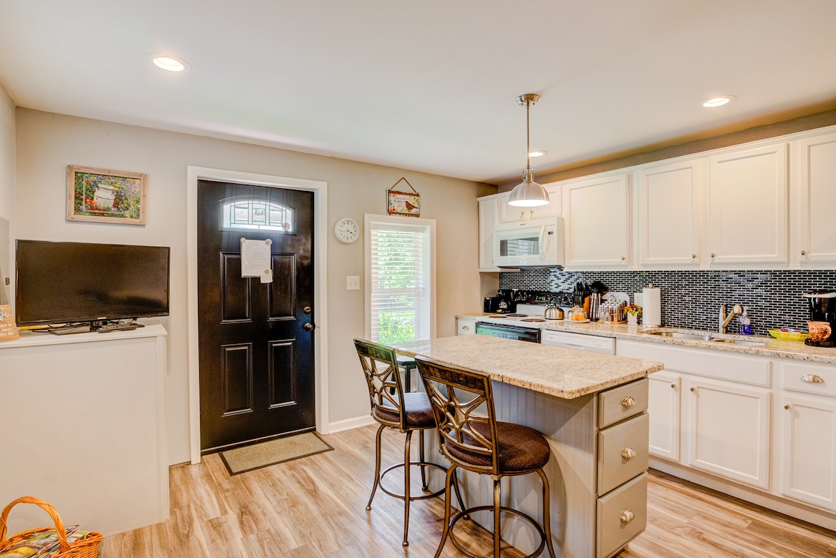 Blue Bird Bungalow. Visita y disfruta de este bungalow de 1921 completamente renovado y construido para la señorita Amy Glenn. La restauración mantuvo el encanto original de la cabaña bungalow, pero añadió diversión y comodidades modernas con encanto. Consta de tres dormitorios y tres baños. Dos con duchas de azulejos fabulosos y uno con la bañera original con patas restaurada maravillosamente. Cocina grande y muy funcional con cocina de gas de cinco estrellas, bloque de carnicero y encimeras de mármol. Chimeneas que funcionan.