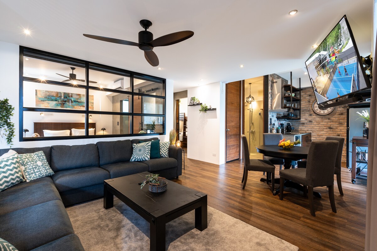 Descubre tu escapada privada en esta minicasa de dos niveles de diseño inteligente, a solo 2 minutos a pie de la playa Klong Dao. El espacio: Adéntrate en este pequeño dúplex único, donde el diseño minimalista se encuentra con la máxima comodidad. El nivel inferior incluye una acogedora sala de estar, una cocina pequeña bien equipada y un baño privado, mientras que el loft superior ofrece un espacio tranquilo para dormir bajo un encantador techo inclinado.