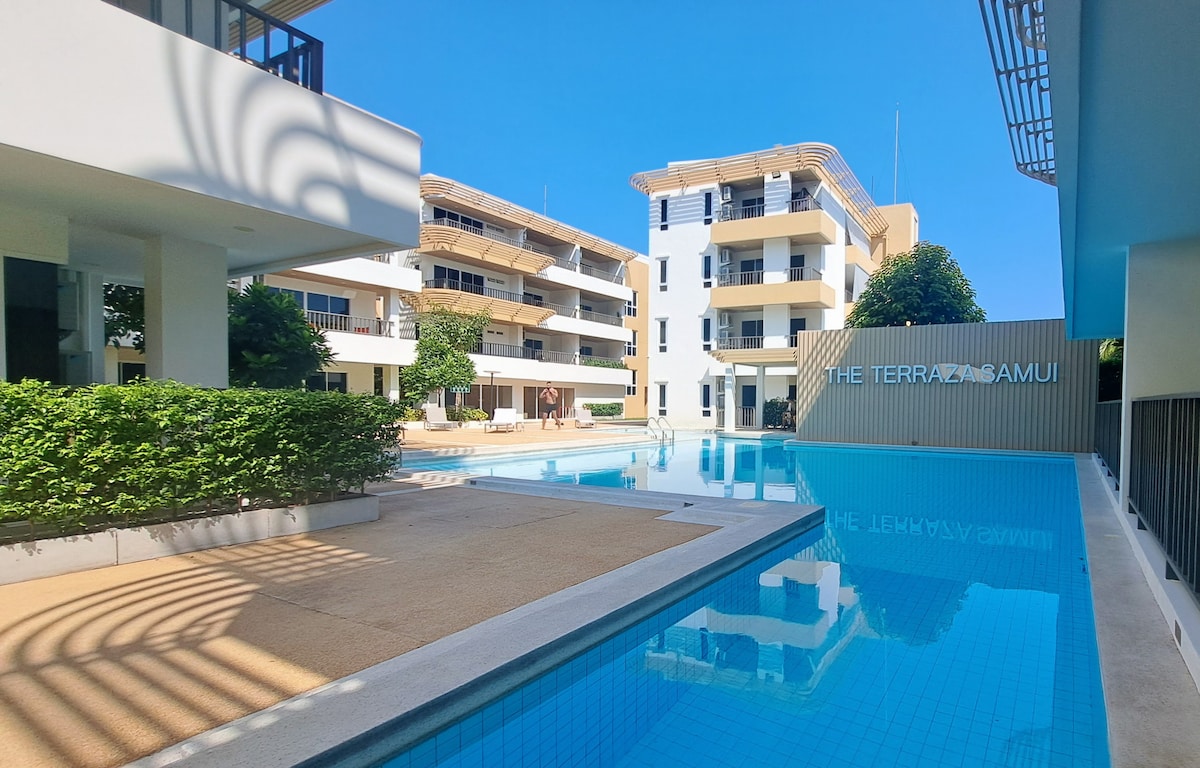 Modern 32m² Gem in Bophut Largest in its category! New stylish apartment with a King-size bed and a 12m² pool-view terrace. Prime location: golf club nearby, walk to Makro/7-Eleven, 6 min to Fisherman's Village, 10 min to Chaweng. Fully equipped: kitchen, washing machine, safe box, microwave, coffee maker and fast Wi-Fi. Resort-style residence with pools, gym and sauna. Perfect for holidays and long stays. Hosted by an experienced pro to ensure you will be happy. Book your stay now!