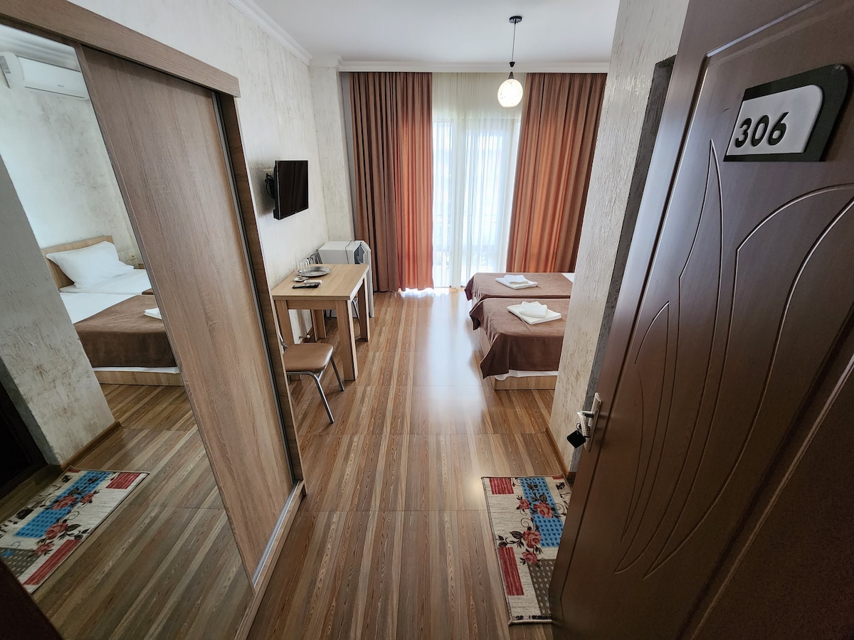 ¡Te invitamos a Kobuleti! En nuestra casa de huéspedes puedes relajarte después de un ajetreado día en la playa o excursiones. Ofrecemos a los huéspedes departamentos de dos dormitorios con entrada independiente, nuestra cocina y baño. El departamento tiene una cama doble con un cómodo colchón y un sofá doble plegable, aire acondicionado, lavadora, nevera y vitrocerámica. Proporcionamos a los huéspedes ropa de cama y toallas de algodón durante su estancia. La playa está a 3 minutos a pie. ¡Te estamos esperando!