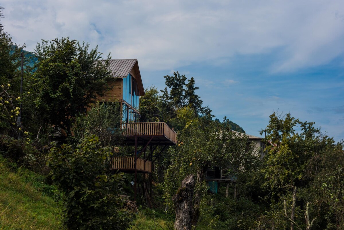 Las montañas son mejores que las montañas ⛰Y es mejor alojarse en Georgia, solo relajarse en nuestra casa de campo alpina con un balcón panorámico, jacuzzi y aire limpio de montaña.🏞 A cambio de excursiones oscuras a cascadas en el calor, puedes elegir vacaciones acogedoras en nuestra casa de ensueño con todo lo que necesitas para sentirte completamente cómodo.