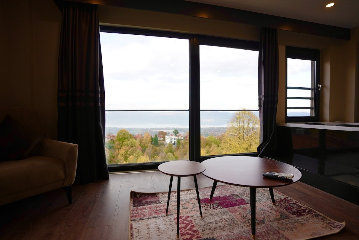 Un apartamento totalmente amueblado con vistas panorámicas al mar desde un amplio balcón en la cima de una colina en Izmit. Cuenta con dos dormitorios, una sala de estar y una cocina totalmente equipada. Ubicado en una zona muy tranquila y familiar, el apartamento está a nivel del suelo sin necesidad de escaleras. A solo 5 minutos en auto del centro de la ciudad y cerca de las principales atracciones como la Torre del Reloj y el Parque Seka. Ideal para estadías cortas y largas