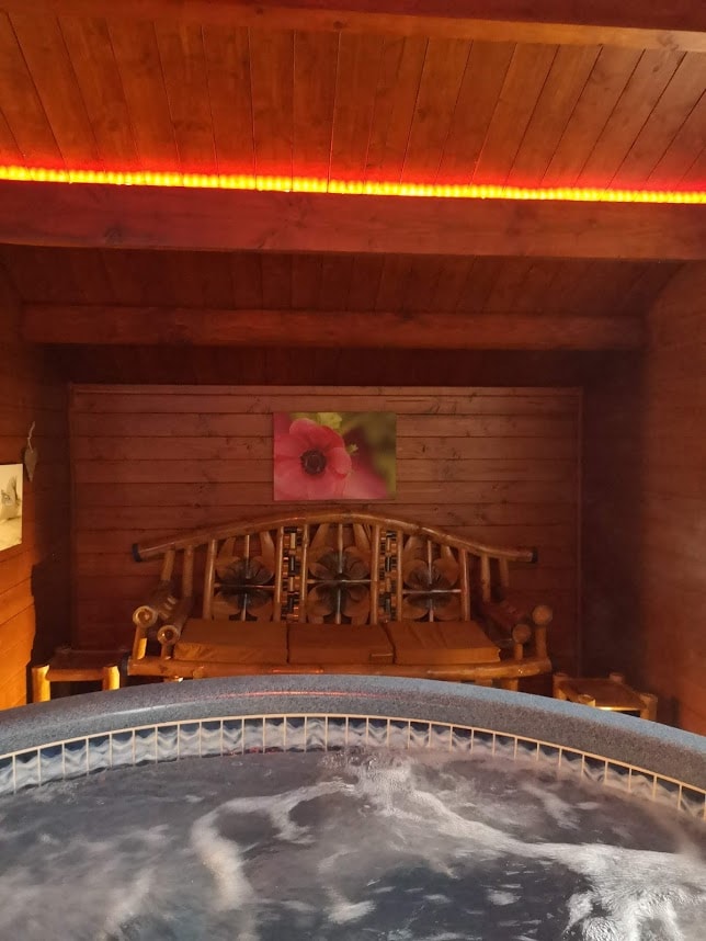 Nuestra suite le ofrece todas las comodidades necesarias con bañera de hidromasaje, sauna y ducha italiana. Una cama king size muy cómoda para descansar y una bonita zona de estar para relajarse. Hay una cocina disponible o se ofrece una fórmula de comida. También tiene una televisión conectada y wifi. El taller de Chill ofrece toallas y ropa de cama. Está incluido el desayuno. Vino, champán o cóctel incluido bajo condiciones. ¡Prohibido para menores de 18 años/Solo para 2 personas!
