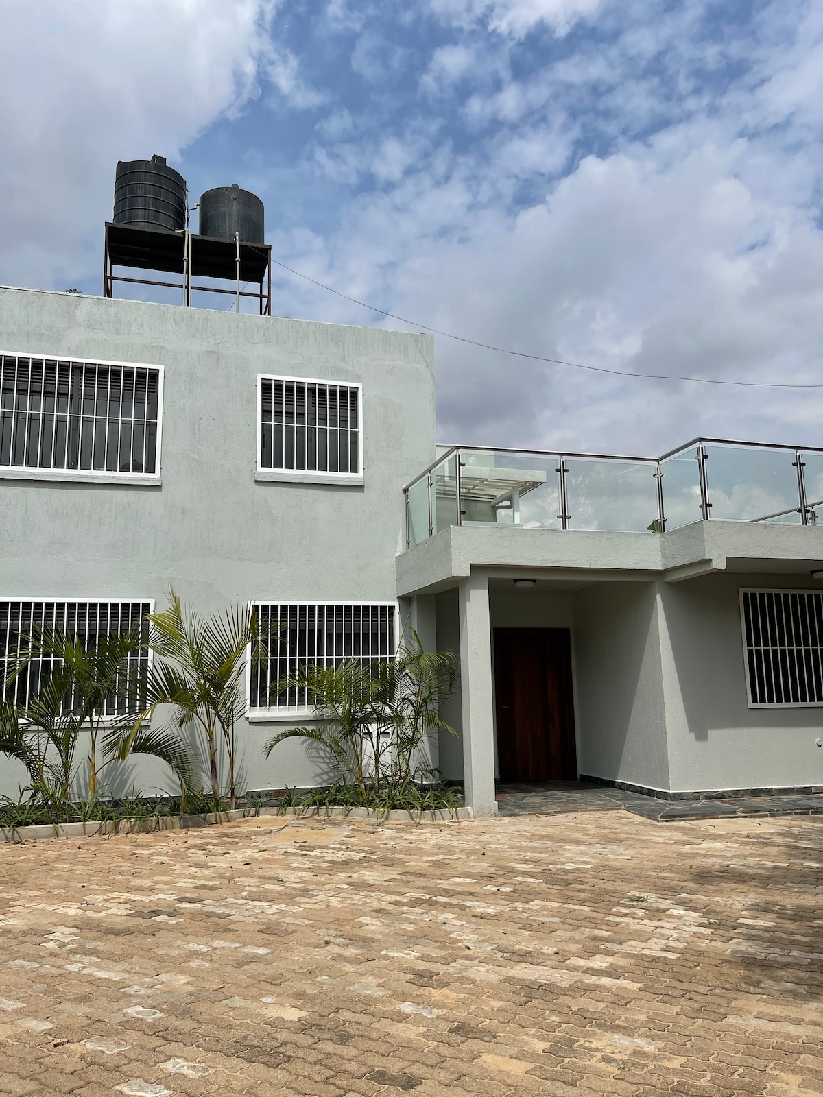 Una casa de dos plantas y 5 dormitorios situada en Kawuku Road al sureste , en una zona residencial tranquila, a 5 kilómetros del centro de la ciudad de Kampala, cerca del lago Victoria. Recepción en la planta baja, comedor Cocina con cocina de gas/eléctrica de seis anillos y lavadora. Dormitorio doble con baño privado. Dormitorio principal en el primer piso con baño privado. Dos dormitorios dobles con baño privado. Un dormitorio doble. Balcones externos con vista al lago Victoria.