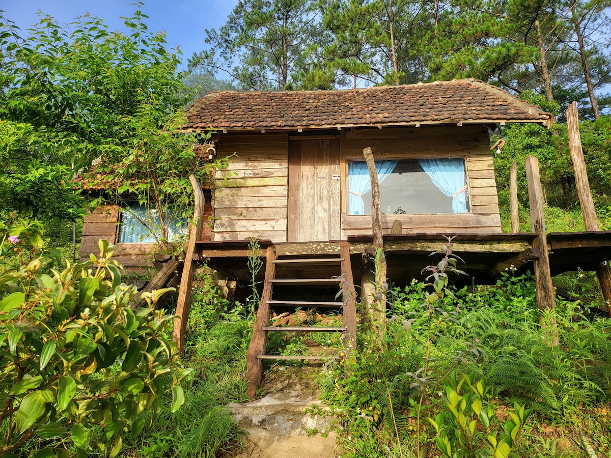 Nuestra casa de madera se encuentra en el pueblo de Kon Vong Kia, construida en el estilo tradicional Mơ Nâm. Desde aquí, se puede ver el hermoso puente colgante y los campos de arroz en terrazas. La casa también sirve como una pequeña biblioteca para los niños del pueblo. Para llegar, subirás una colina y encontrarás dos acogedoras casas rodeadas de bosque. Por la noche, puedes reunirte alrededor de una hoguera, contemplar las estrellas y ver las luciérnagas.