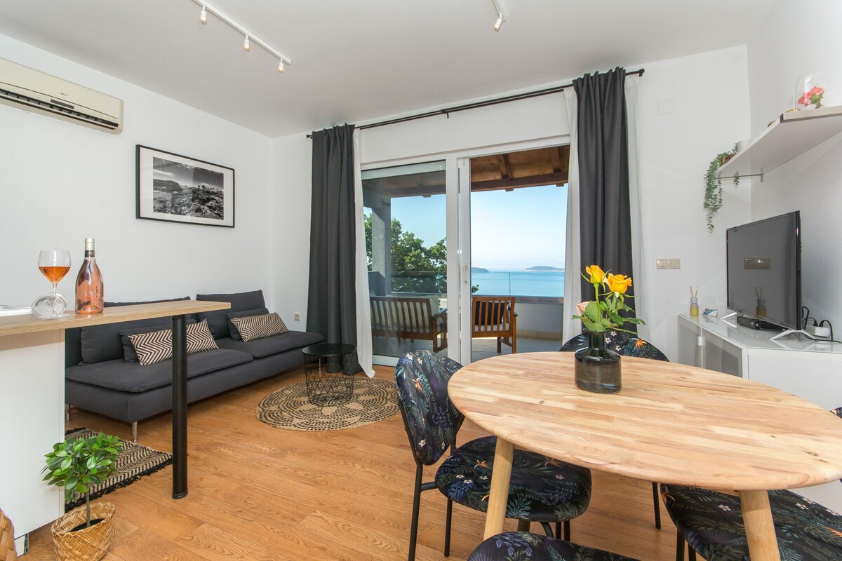 Hermoso y lujoso apartamento de 100 m2 situado en una casa familiar con espectaculares vistas al mar, a 5 minutos a pie de la playa a través de un hermoso sendero forestal. El apartamento fue renovado en 2021, la sala de estar fue construida hace un siglo con un estilo tradicional antiguo. Zona tranquila lejos del ajetreo de la ciudad con hermosas playas y la propia naturaleza. El casco antiguo de Dubrovnik y Cavtat están a solo 10 minutos en coche o, si prefieres viajar por mar, la estación de barcos está a 10 minutos a pie del apartamento.