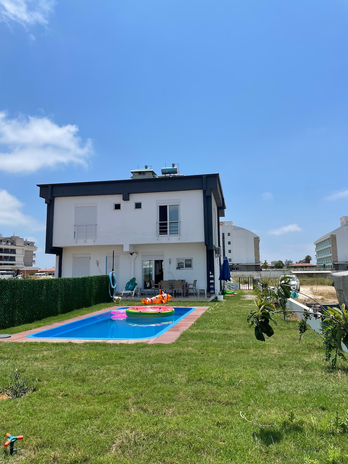 Una casa dúplex con todos sus muebles y equipos, tiene su propio jardín, una piscina y está a 5-10 minutos de la playa. Para estancias de menos de 7 días, se cobra una tarifa de limpieza de 2000 TL. La hora de entrada es a partir de las 14:00 y la hora de salida es a más tardar a las 11:00.