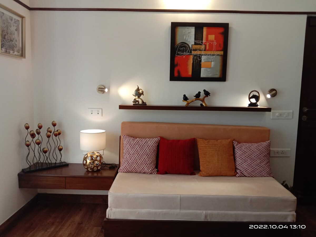 Amplia suite 1BHK de diseño de 600 pies cuadrados con balcón privado | Wifi de fibra óptica de alta velocidad y TV inteligente con plataformas de streaming, escritorio de trabajo/comedor, respaldo de energía las 24 horas, los 7 días de la semana para trabajo y comodidad ininterrumpidos | Cama tamaño king Luxe y colchón ortopédico, armarios de madera para almacenamiento | Cocina pequeña totalmente equipada | Sofá cama en la sala de estar , ocupación máxima 4 | Acceso al ascensor, servicio de limpieza profesional y acceso a lavandería de pago en el sitio para estancias largas | Ubicado en el centro de Bangalore | LGBTQIA++ Afirmativo