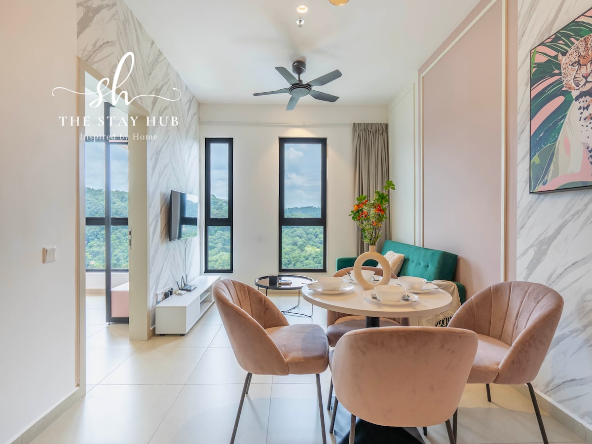 Bienvenido a SweeHome @ MOSSAZ en Empire City, donde el encanto rústico se encuentra con la elegancia minimalista. Ubicado en Damansara, Petaling Jaya y vecino con 1 Utama, IKEA, KPJ Damansara Specialist 2, nuestra casa de familia ofrece un refugio sereno diseñado con una mezcla perfecta de elementos naturales y simplicidad moderna. La sala de estar destaca los tonos neutros, las líneas limpias y las vistas a las montañas que definen la estética minimalista. Alójate y experimenta la mezcla perfecta de encanto rústico y comodidad moderna.
