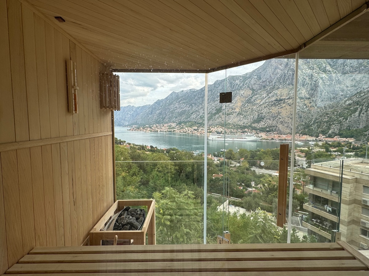 Tivat Bliss: vistas al mar, piscina y sauna
