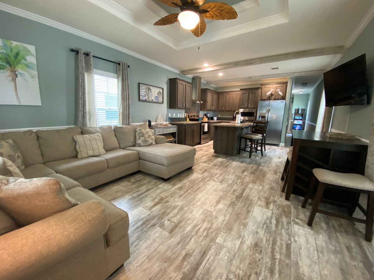Ubicada en Rio Vista, que cuenta con su propio parque privado cerrado de 3 acres junto al río Rainbow. El parque cuenta con baños, pabellones, parrillas y una rampa para botes, ¡así que TRAIGA SU BOTE! Relájese junto al río en el parque privado, donde podrá pescar y nadar. El parque está a cinco minutos a pie (2 cuadras) de la casa. Los huéspedes pueden utilizar gratuitamente kayaks y tablas de paddleboard. Se pueden transportar con el carrito de golf, que cuenta con un enganche y un remolque para kayak. Si su vehículo tiene un enganche, puede utilizarlo para otros destinos de la zona.