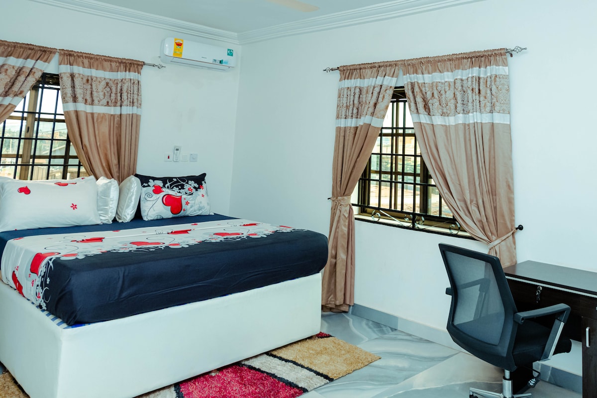 Relájate en este espacio tranquilo y elegante. Simplemente hermoso y tranquilo. A 5 minutos en coche del aeropuerto internacional de Kotoka. Dos dormitorios completamente amueblados con un espacio de oficina privado