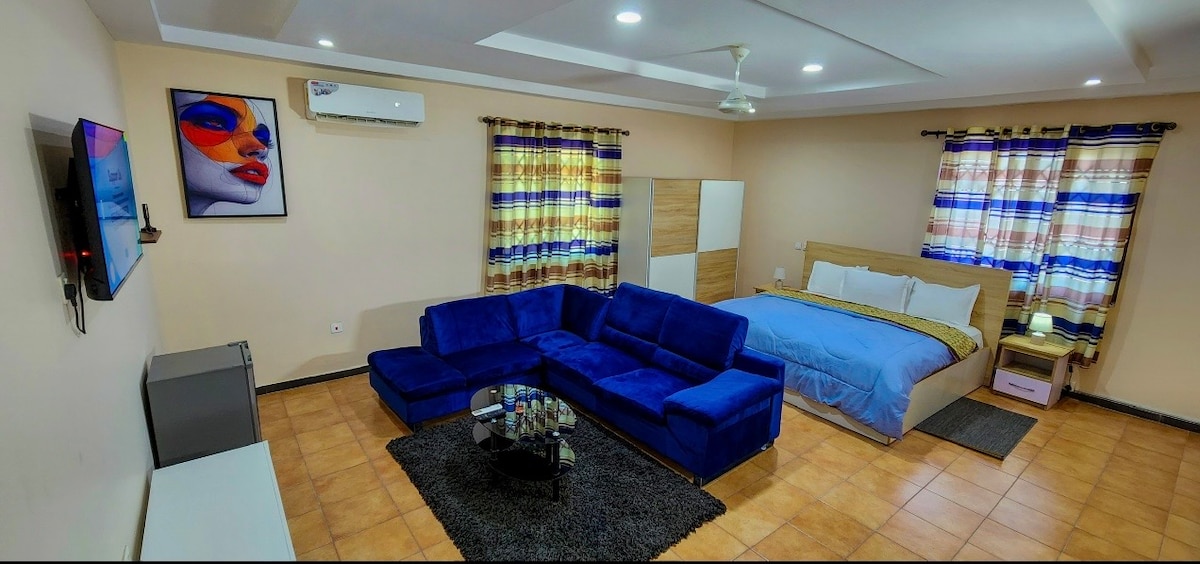Una encantadora habitación de 1 dormitorio con baño en East Legon, a 18 minutos del aeropuerto de Kotoka. Perfecto para viajeros de negocios, académicos y familias, cuenta con una cama tamaño queen, comodidades modernas, un mini-gimnasio y una cocina totalmente equipada. Disfruta de 5G ultrarrápido, energía 24/7, CCTV, aparcamiento seguro, limpieza semanal, llegada/salida flexible (si la habitación está libre) y fácil acceso a tiendas, supermercados y al campus de UG. ¡Traslados al aeropuerto gratuitos y cenas familiares una vez a la semana para los huéspedes que se alojen al menos 7 noches!