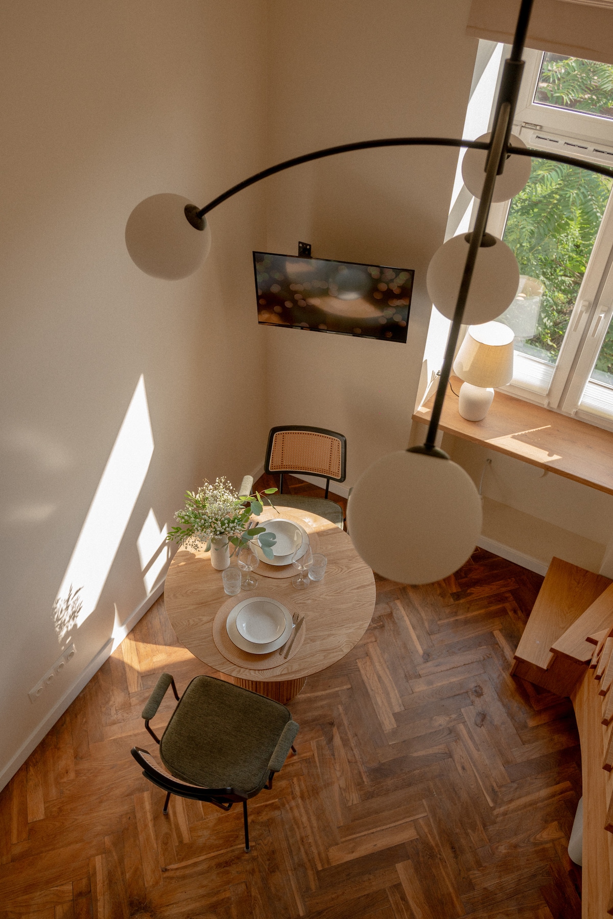Relájate en un antiguo sofá cabriol en una sala de estar llena de luz adornada con alfombras de piel de oveja y muebles vintage. Los detalles reciclados y los toques minimalistas dan un ambiente ecléctico a este espacio remodelado. El apartamento está situado en una casa de vecinos del siglo XIX, en el casco antiguo, entre la plaza principal y el antiguo barrio judío. Pasea por las calles de aspecto especial bordeadas de tiendas de antigüedades peculiares, intrigantes galerías de arte y cafés de estilo shabby-chic.