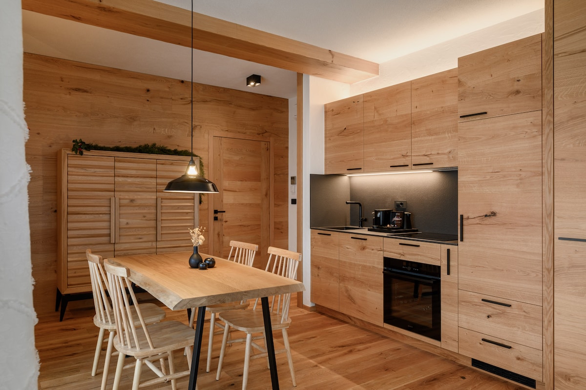 Este nuevo departamento es perfecto para 4-6 personas. Está ubicado en el segundo piso y tiene una sauna privada. El departamento incluye una sala de estar y comedor, un amplio balcón con una hermosa vista a la montaña y un espacio de estacionamiento privado. El departamento también tiene una cocina bien equipada y un baño moderno. El departamento tiene 1 dormitorio con una cama tamaño king. También hay una cama tamaño king y un sofá cama adicional disponibles en la sala de estar para los huéspedes. ¡Disfruta del lujo y la comodidad de esta propiedad!