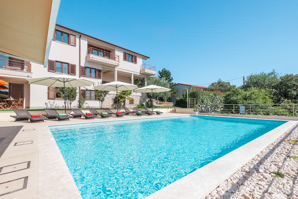 Visítenos en el lugar más hermoso de Croacia, en la isla de Krk en BASKA. Nuestro exclusivo complejo vacacional tiene 9 amplios apartamentos independientes con balcón o terraza y jardín, una zona de piscina privada con tumbonas y espacios de aparcamiento para nuestros huéspedes justo al lado del alojamiento. Debido a su tamaño y equipamiento, los apartamentos ofrecen todas las posibilidades para unas vacaciones para dos, con la familia o con amigos.