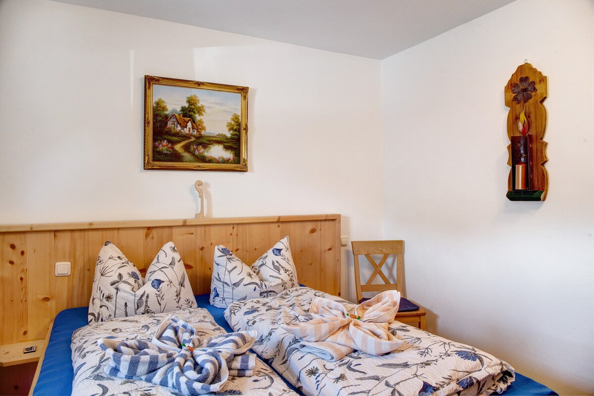 Le ofrecemos un apartamento de vacaciones en el ático bien cuidado y confortable (año de construcción 2001) con dos dormitorios en una ubicación absolutamente tranquila y soleada, y un balcón orientado al sur con un hermoso panorama alpino. A partir de 3 personas, el dormitorio adicional está incluido. Dos personas pueden alquilar el dormitorio adicional de manera opcional por un suplemento de 8 €/día. Por favor, envíenos una solicitud previa. A continuación, le presentaré una oferta de alojamiento. Lo mismo se aplica a los niños menores de 2 años, para los que también es necesario una oferta del anfitrión.