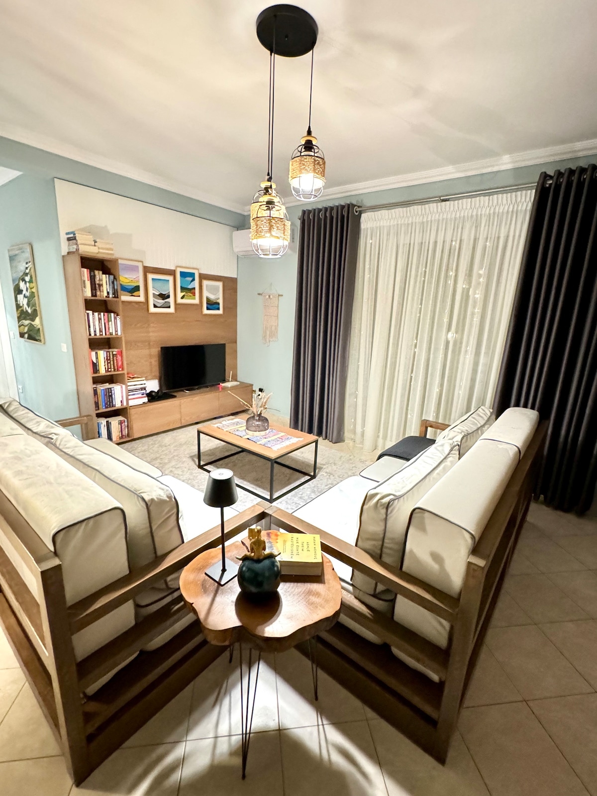 Casa cómoda ¡Descubre el alojamiento ideal en el centro de Agioi Saranda! Nuestra casa está a solo 3 minutos de la playa y de los mejores cafés y restaurantes de la ciudad. Ideal para parejas, familias o amigos Incluye: 1 dormitorio con una cómoda cama doble Sala de estar de buen gusto con sofá cama y Smart TV Cocina totalmente equipada y baño moderno Balcón con vistas a la ciudad, wifi, aire acondicionado Vive el ambiente auténtico de Agioi Saranta, con todo lo que necesitas a un paso
