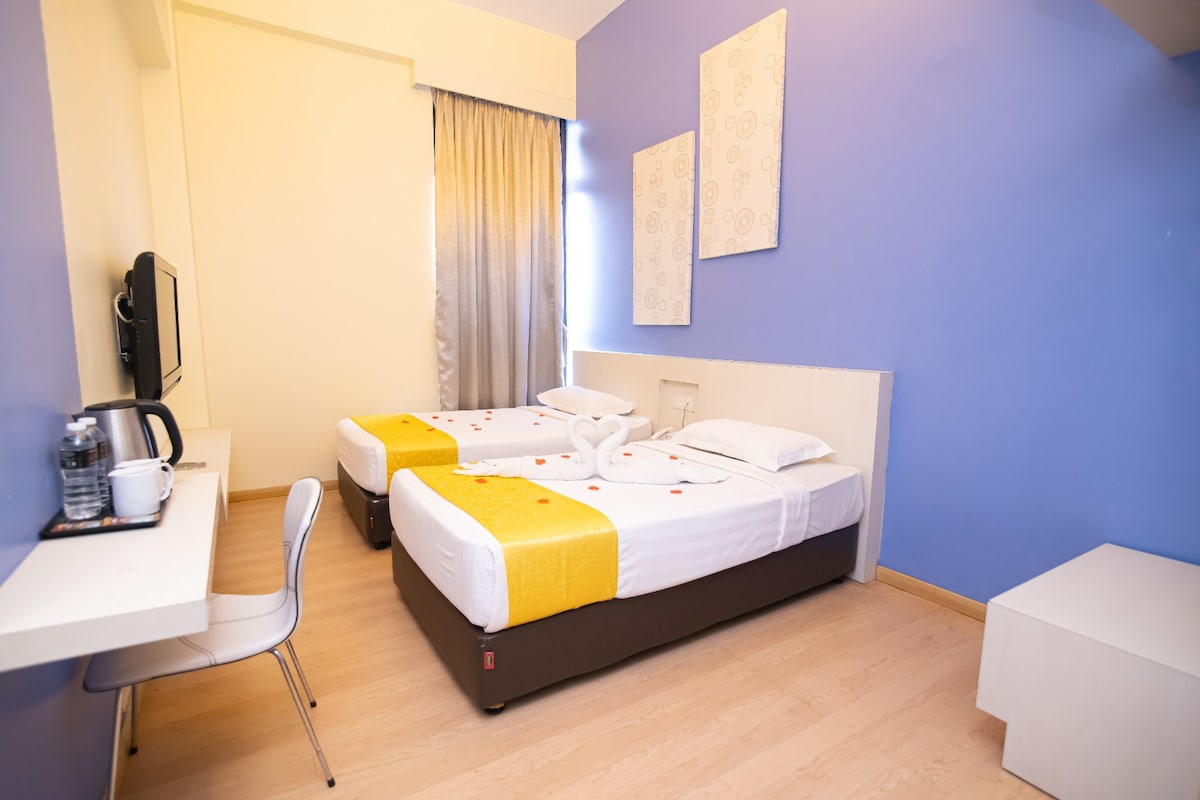 Indulge in comfort and convenience during your stay in Kuantan by booking our Executive Queen Room. Our tastefully decorated and spacious room features a queen-size bed adorned with fresh linens and fluffy pillows to ensure a restful sleep. Enjoy your favorite shows on the flat-screen TV, stay connected with free Wi-Fi, and catch up on work at the cozy desk and chair. The private bathroom is stocked with soft towels and essential toiletries for your convenience.