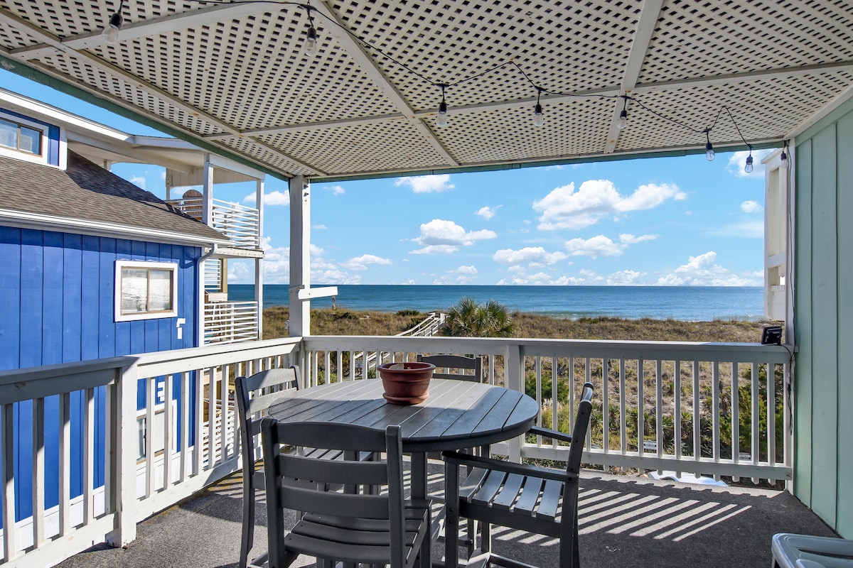¡Apartamento en el segundo piso de la unidad final recientemente renovado directamente en el océano! No se prestó nada en esta renovación. Simplemente no te acercas más que esto. ¡A pocos pasos de la playa! También hay una piscina frente al mar donde puedes pasar el día sumergiéndote en los rayos del sol. La pesca de surf es excelente justo enfrente del condominio debido a una gran formación rocosa junto a Fort Fisher. **Capacidad máxima de TRES (3) adultos**