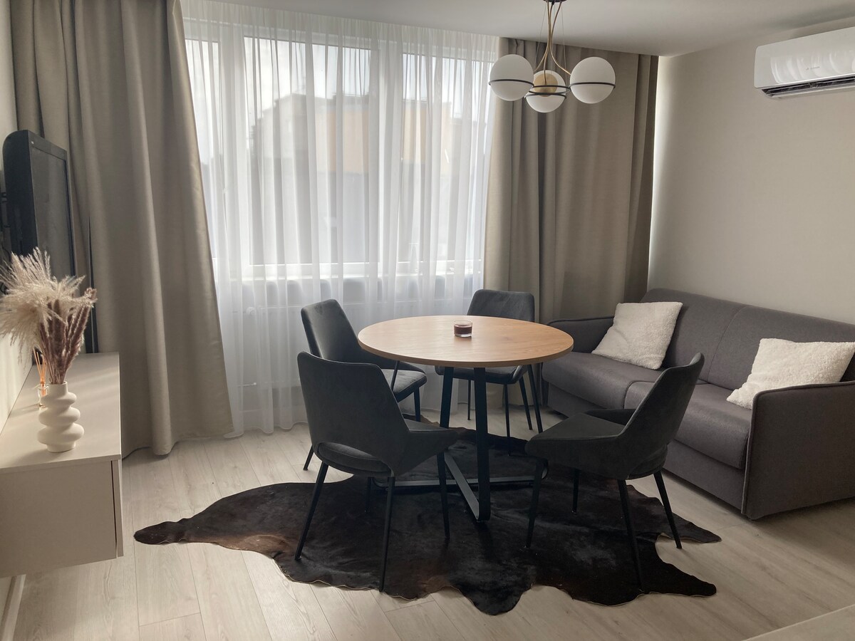 Un elegante estudio para relajarte para una pareja o una joven familia en el centro de Nida, desde donde puedes llegar cómodamente al mar, la laguna, los restaurantes o el supermercado.