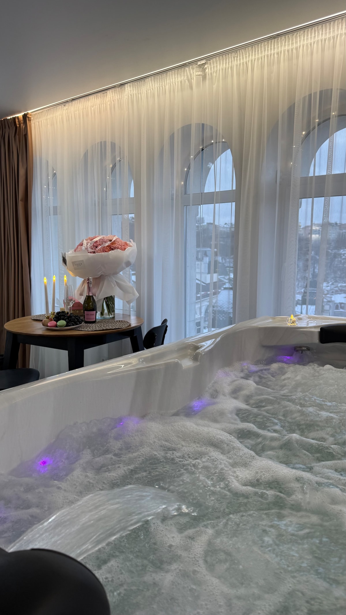 El apartamento panorámico único de Apetiko con sauna y jacuzzi se encuentra en el corazón del Kiev histórico en el Andriivskyi Descent, adecuado tanto para parejas como para grupos pequeños. Convenientemente ubicado cerca de todos los lugares de interés de Kiev, así como del centro. También puede pedir un desayuno continental en el restaurante Terrace por un suplemento de 400 UAH por persona.