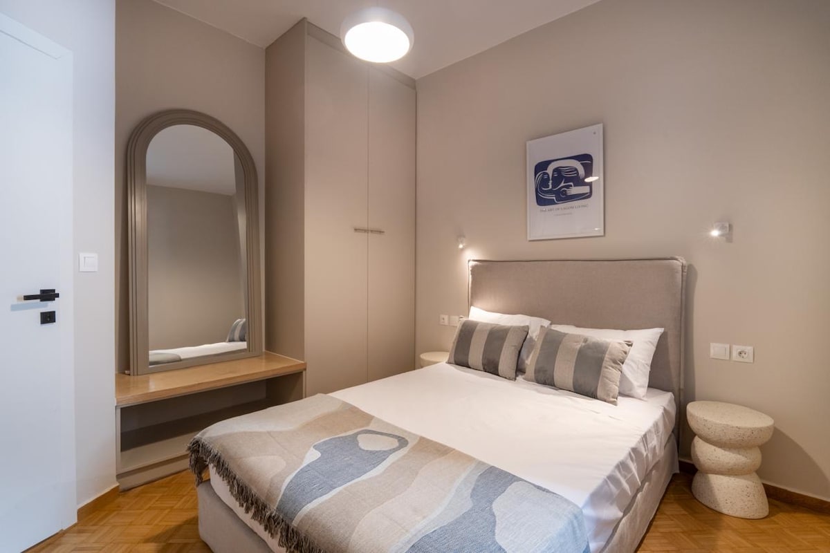 Apartamento exclusivo de 130 m2, tres dormitorios (2 tamaño king, una queen) con unas vistas impresionantes del parque, Lycabettus Hill, la ciudad y la Acrópolis. Paletas de colores recién renovadas, suaves y terrosas, materiales naturales y minimalismo urbano, crean un universo de lujo sin pretensiones y lo convierten en la escapada perfecta. Una cocina totalmente equipada, aire acondicionado, WIFI súper rápido (100 mbps) y televisores inteligentes con Netflix gratuito satisfacen las demandas del viajero experimentado. Dos baños, uno en suite. Perfecto para familias y grupos