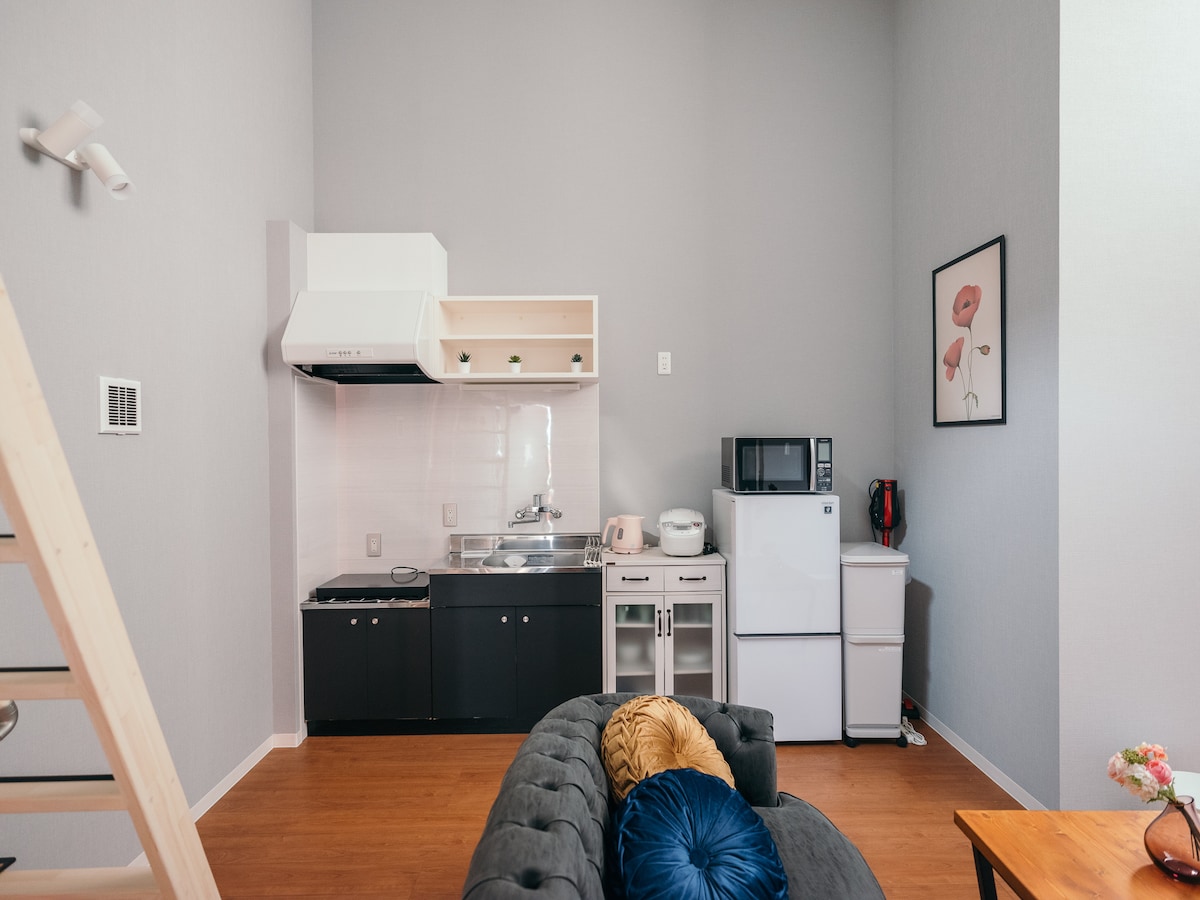 Este es un apartamento privado de 1 habitación con un loft ubicado en el segundo piso. (Ten en cuenta que no hay ascensor). 【Estacionamiento gratuito】 La reservación es obligatoria con anticipación. 【Bicicletas gratuitas】 Hay 8 bicicletas disponibles para su uso. No es necesario reservar, puedes usarlos en cualquier momento.