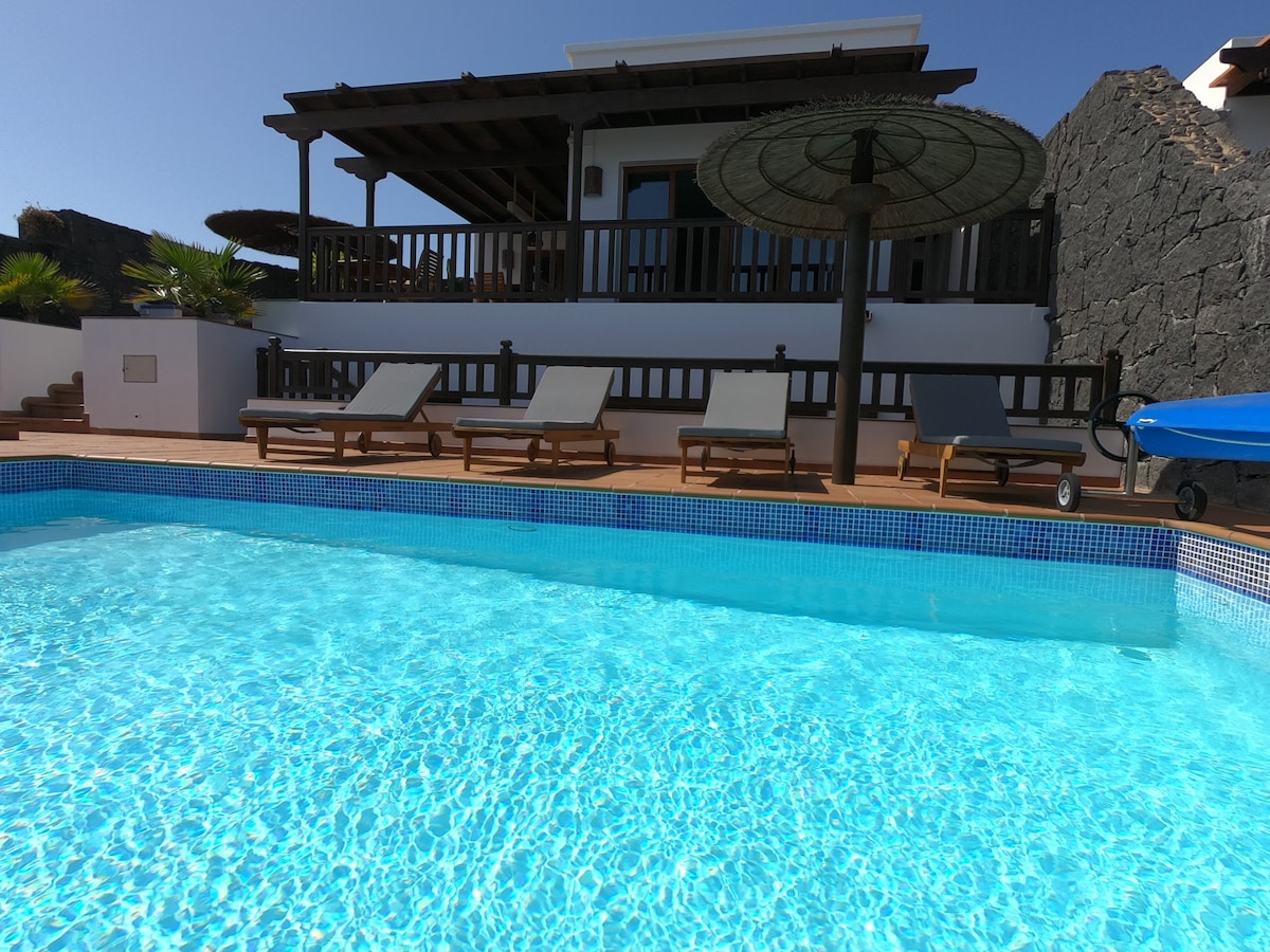 Lujosa villa de 2 dormitorios en La Asomada, Lanzarote. Equipamientos modernos, vista al mar desde todos los puntos, piscina de 11 m, piscina para niños, amplio espacio al aire libre y una pérgola de 15 m. Entorno rural sereno, a poca distancia en coche de Puerto del Carmen y cerca de los viñedos de La Geria. Perfecto para relajarse y explorar.