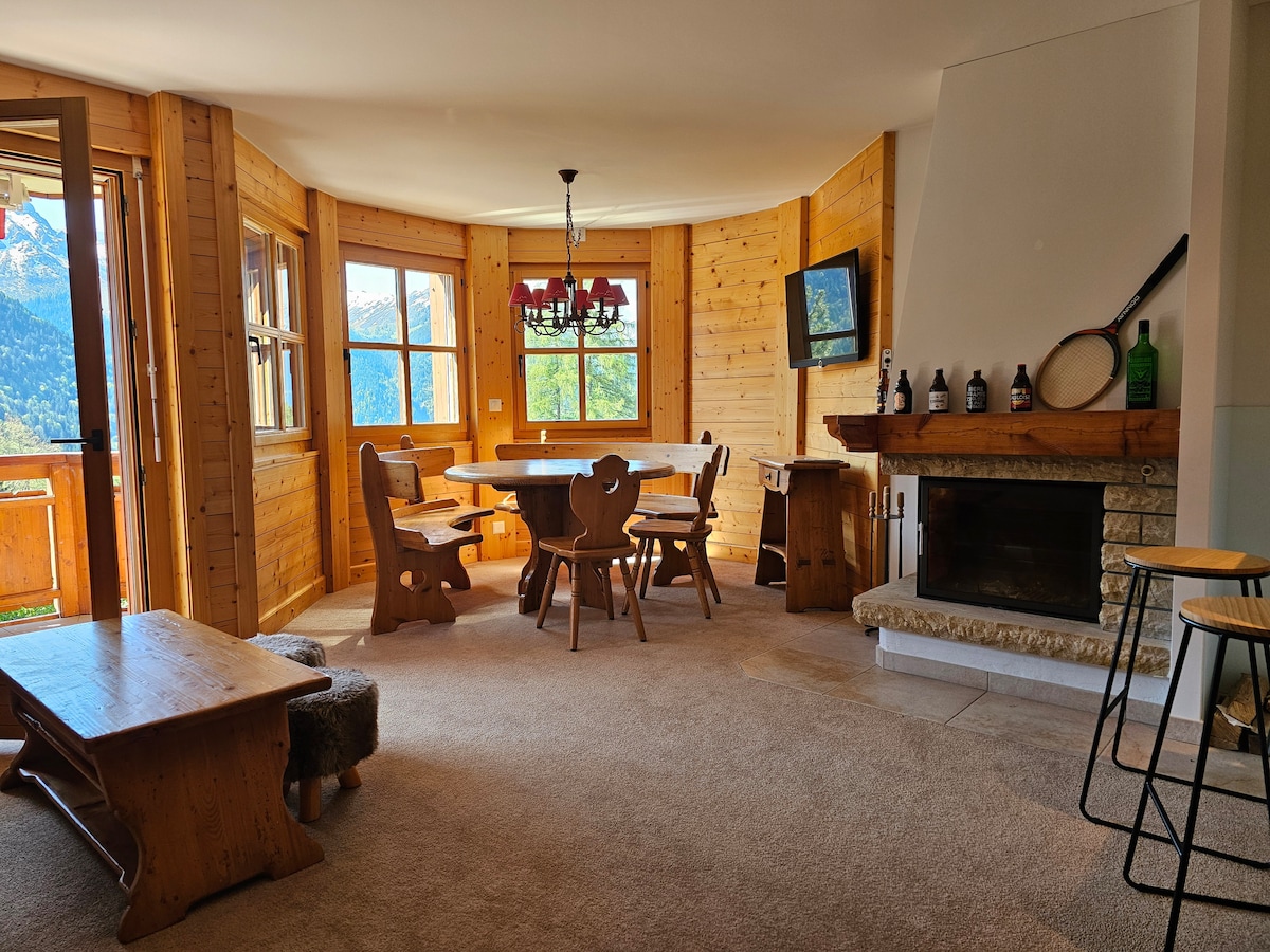 L'appartement fait partie de l'annexe érigée en 1950 au chalet paternel. Ce chalet a été construit en 1850 par mon arrière-grand-père, mes grands-parents y ont vécus et mon papa et sa soeur y sont nés. L'appartement a été rénové de peu, il est meublé simplement et fonctionnellement. Devant le chalet, il y a un terrain gazonné, qui a été longtemps le potager et la seule source de revenu pour ma grand-maman devenue veuve prématurément.
